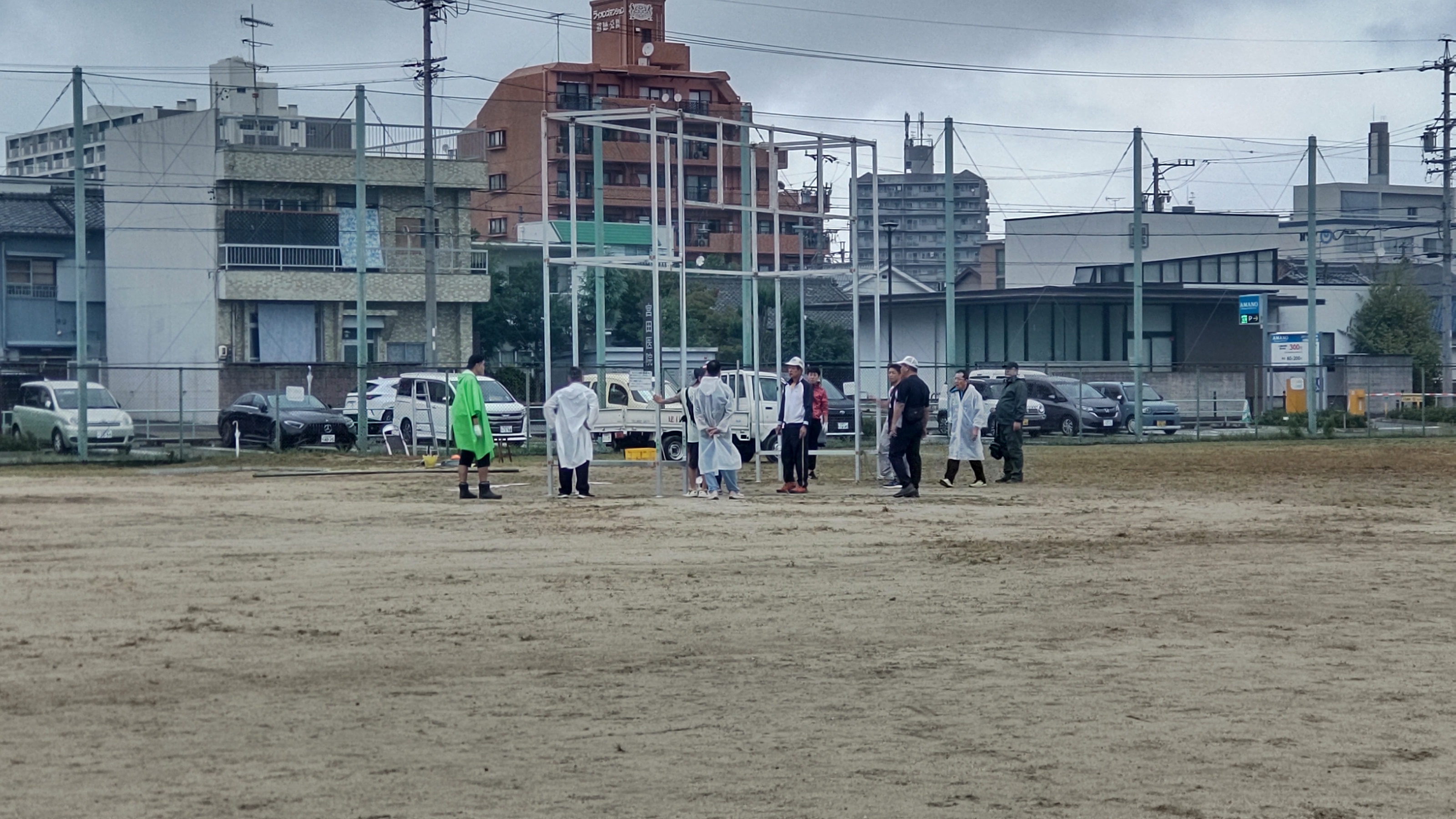 〇令和7年10月11日(土) あいにくの小雨の中、体育委員と防犯の皆様による体育祭の準備が行われました。おかげで翌日無事に体育祭を行うことができました。皆様お疲れさまでした。