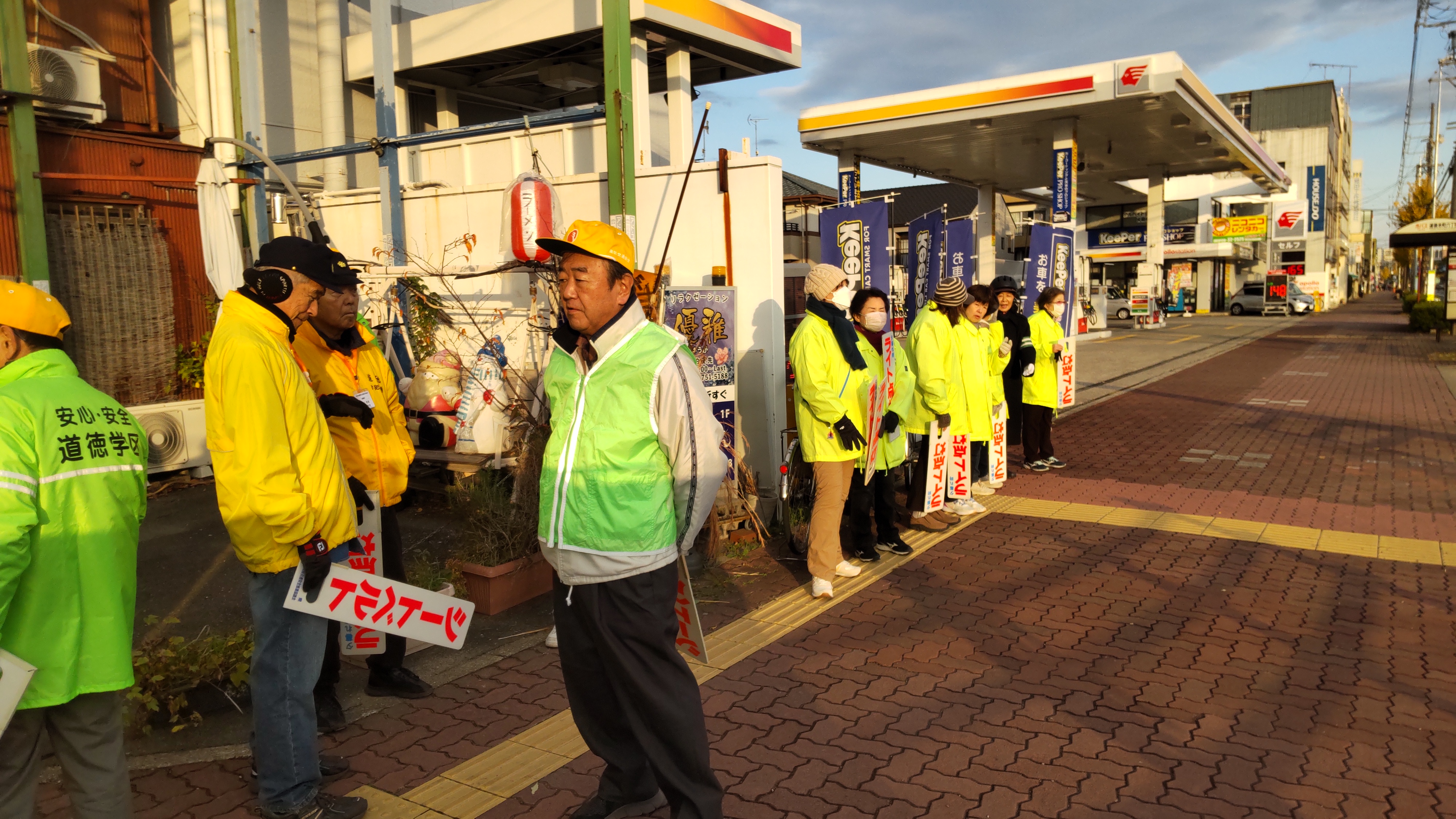 〇令和6年12月6日(金) 朝 学区協議会役員、防犯交通及び母親交通の皆様ら による交通安全活動が行われました。年4回季節ごとに行われるこの活動のうち、12月は知多街道沿いで安全運転をドライバーさんに呼びかけました。参加された皆様お疲れさまでした。