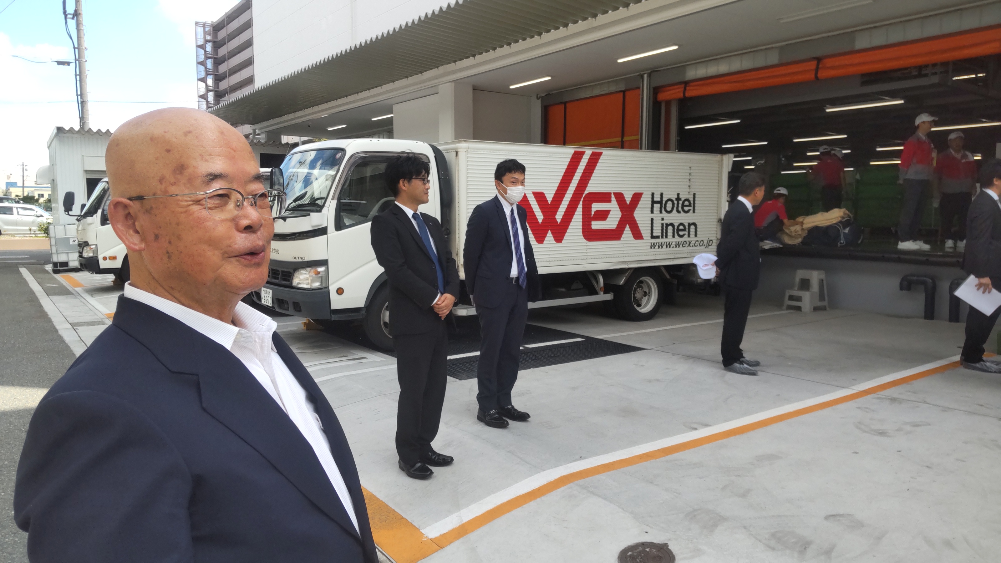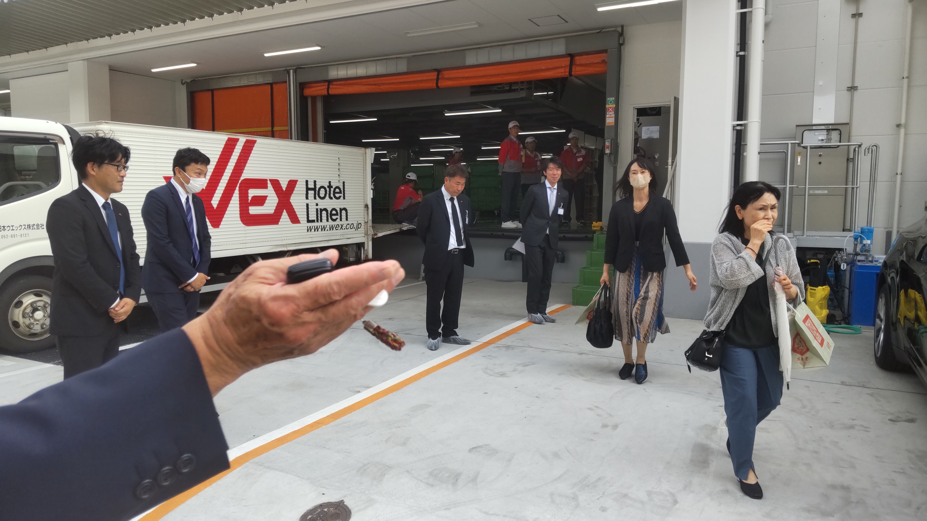 〇令和5年9月15日(金) 道徳学区内にある新日本ウエックス株式会社の新工場の見学会が行われ、地元の皆さんとともに、学区協議会のメンバーも招待されました。新日本ウエックスはホテルのシーツやタオルなどを洗濯してお届けする企業としては、日本最大の規模を誇る会社で全国に工場を持っていますが、名古屋市南区のこの場所が企業発祥の地。地元の人たちともうまく調和して発展を続けている素晴らしい会社です。
