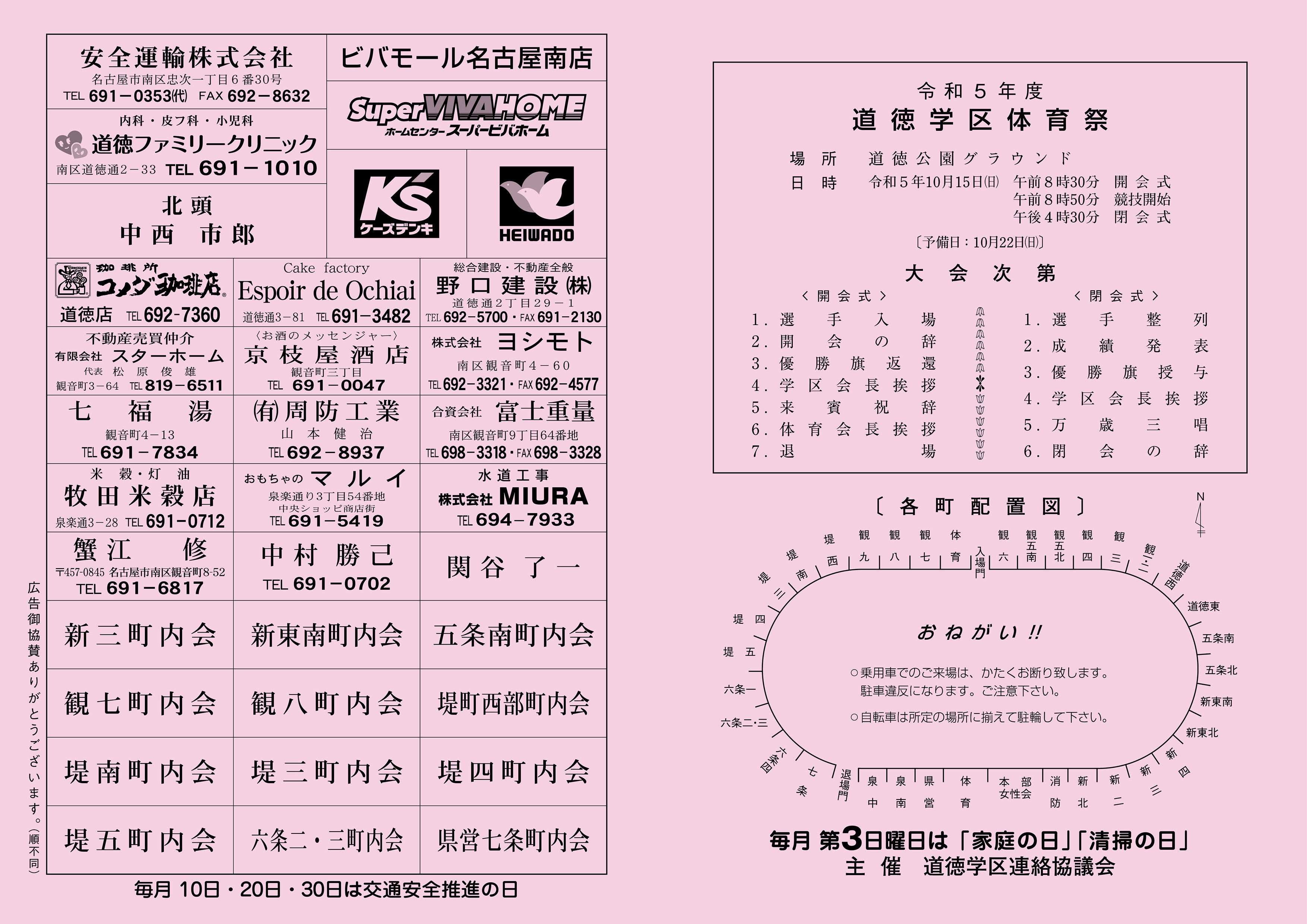 〇令和5年10月15日(日)に開催予定の学区協議会主催体育祭のプログラムを載せました。