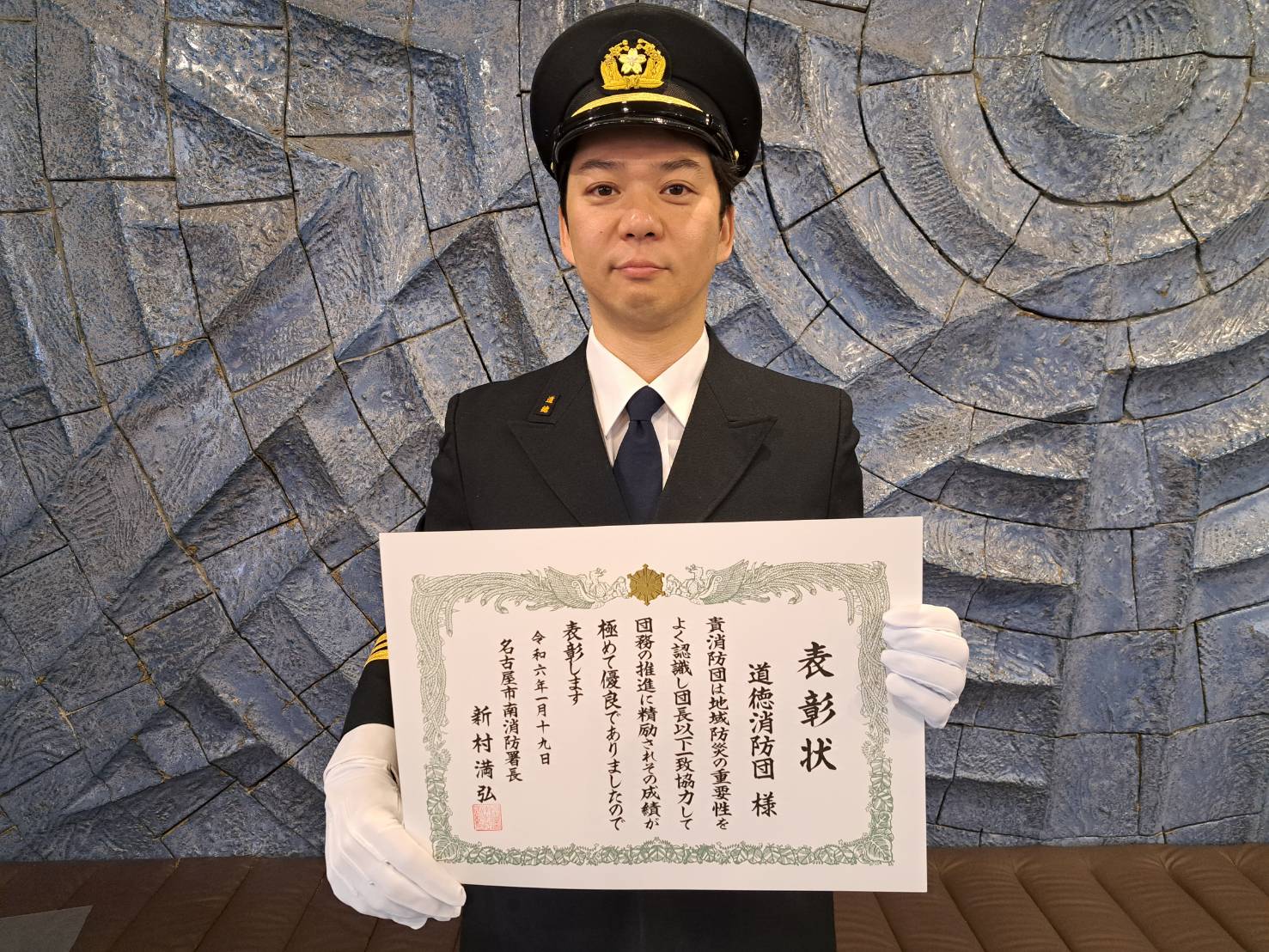 〇令和6年1月19日(金)南文化小劇場で令和6年南区消防表彰式が行われ、道徳消防団が表彰されました。