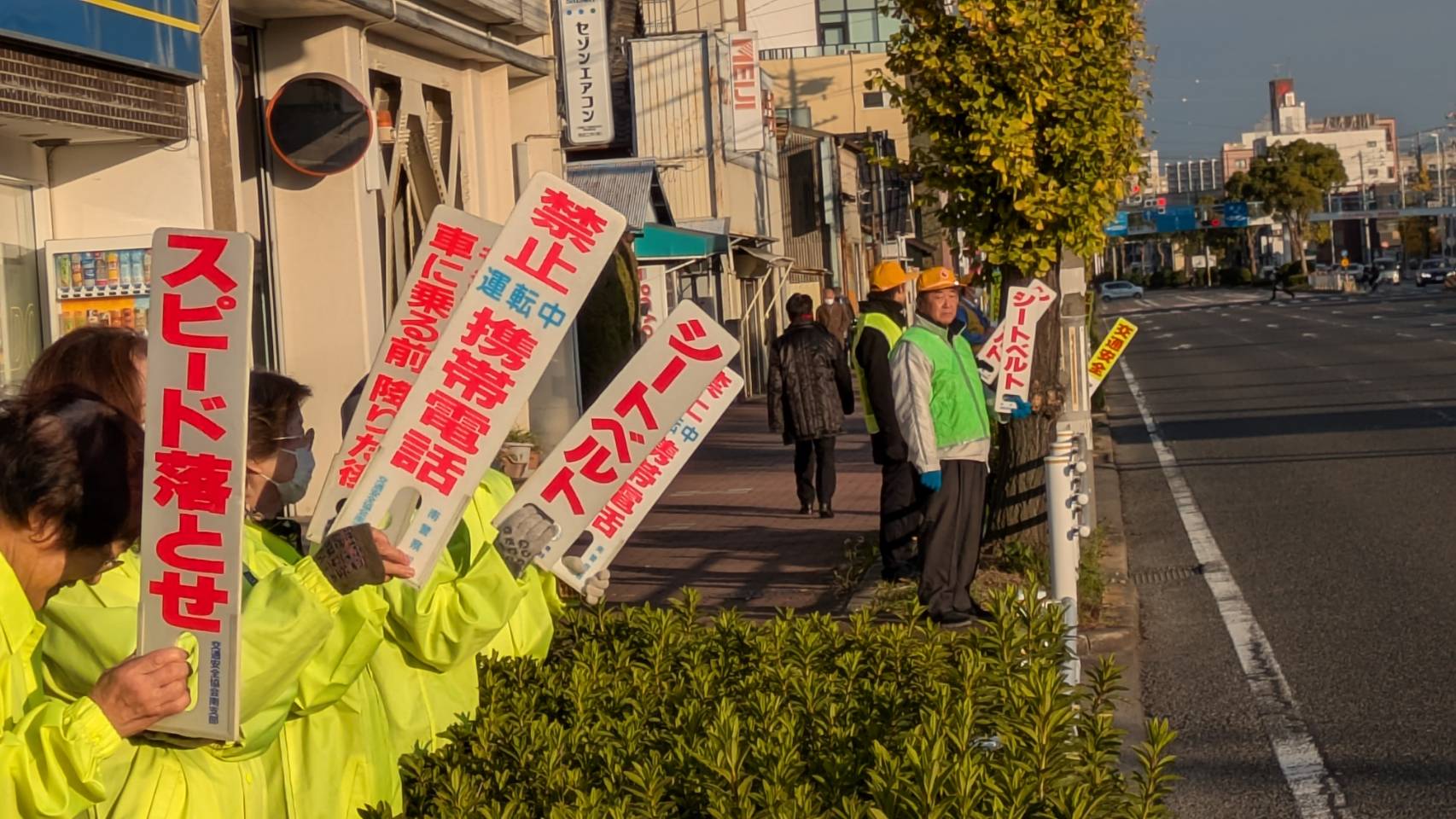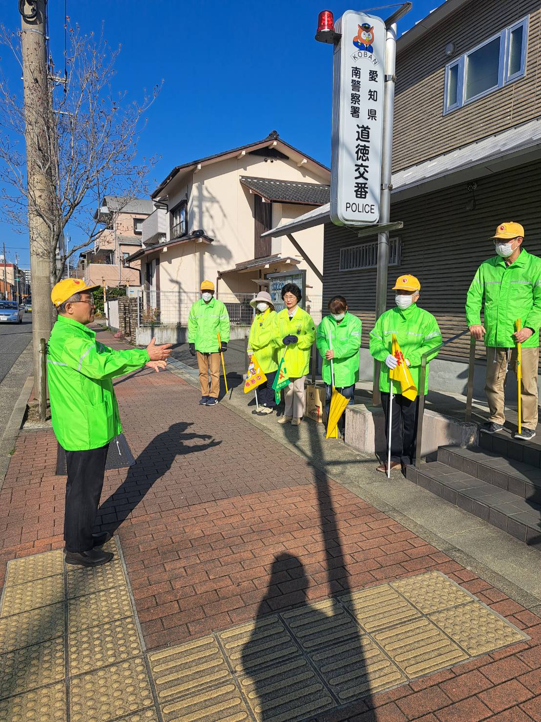 〇令和6年12月6日(金) 朝 学区協議会役員、防犯交通及び母親交通の皆様ら による交通安全活動が行われました。年4回季節ごとに行われるこの活動のうち、12月は知多街道沿いで安全運転をドライバーさんに呼びかけました。参加された皆様お疲れさまでした。