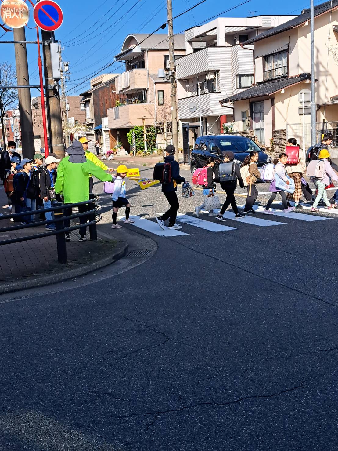 〇令和7年4月10日(木) 朝 学区協議会役員、当番の町内会長及び母親交通の皆様 による 交通安全活動 が行われました。皆様お疲れさまでした。