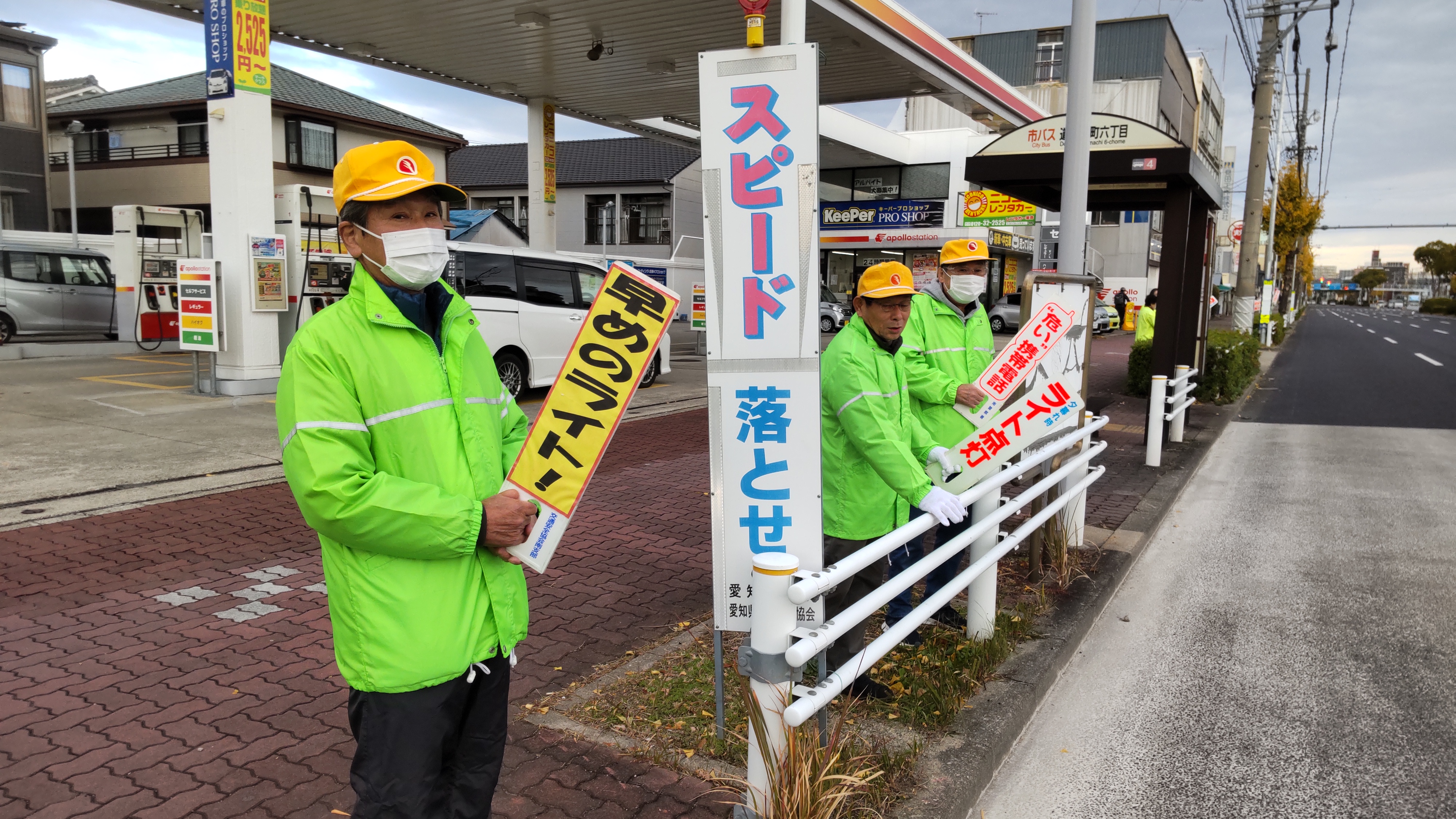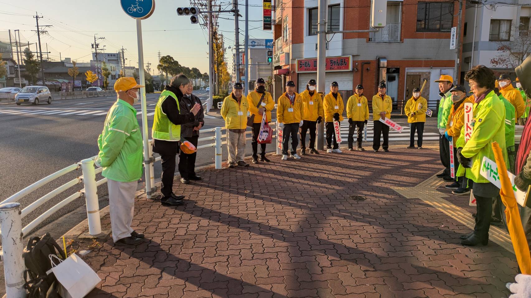 〇令和7年12月5日(金) 朝 学区協議会役員、防犯交通及び母親交通の皆様ら による交通安全活動が行われました。年4回季節ごとに行われるこの活動のうち、12月は知多街道沿いでドライバーさんに安全運転を呼びかけました。参加された皆様お疲れさまでした。