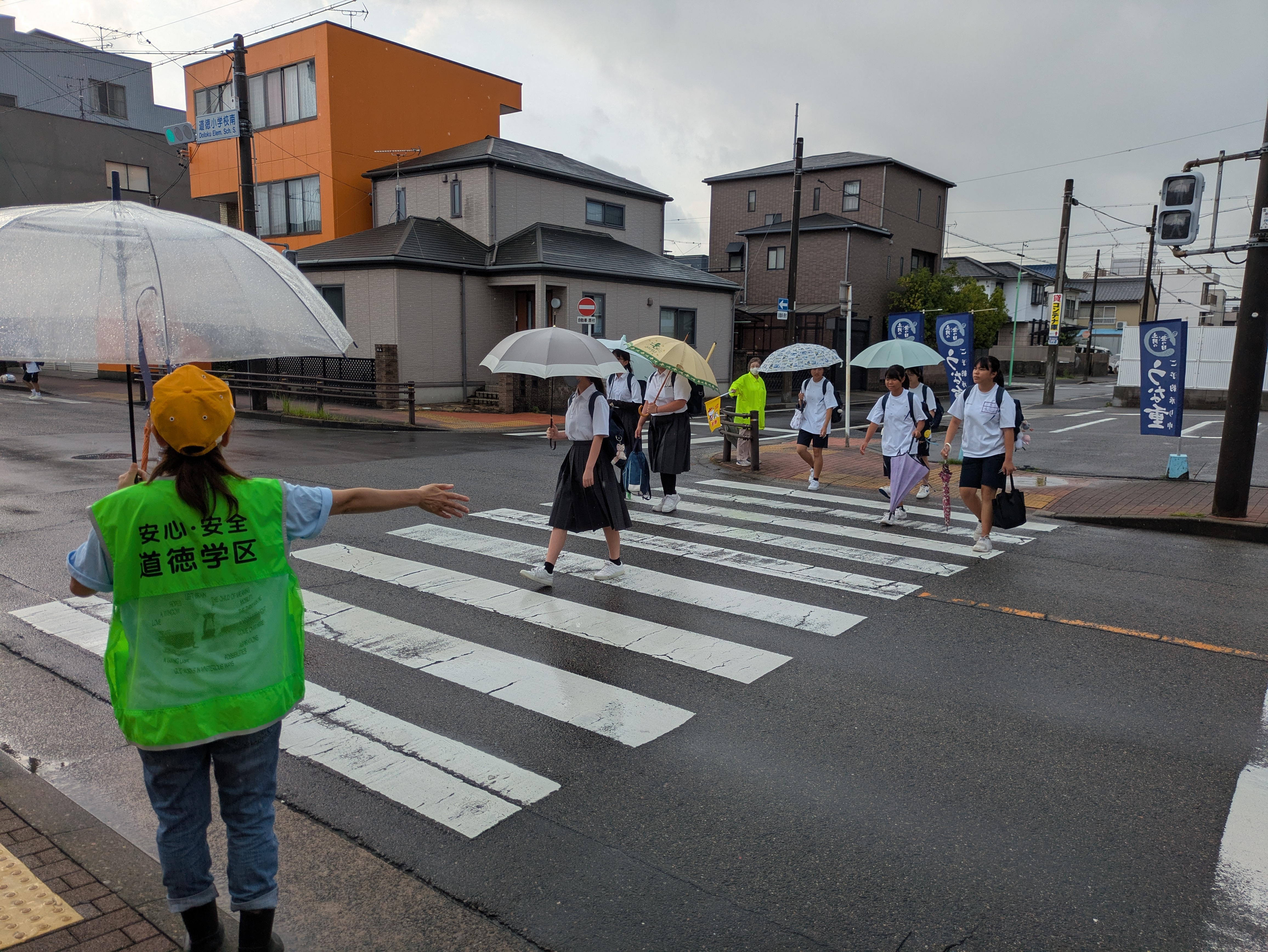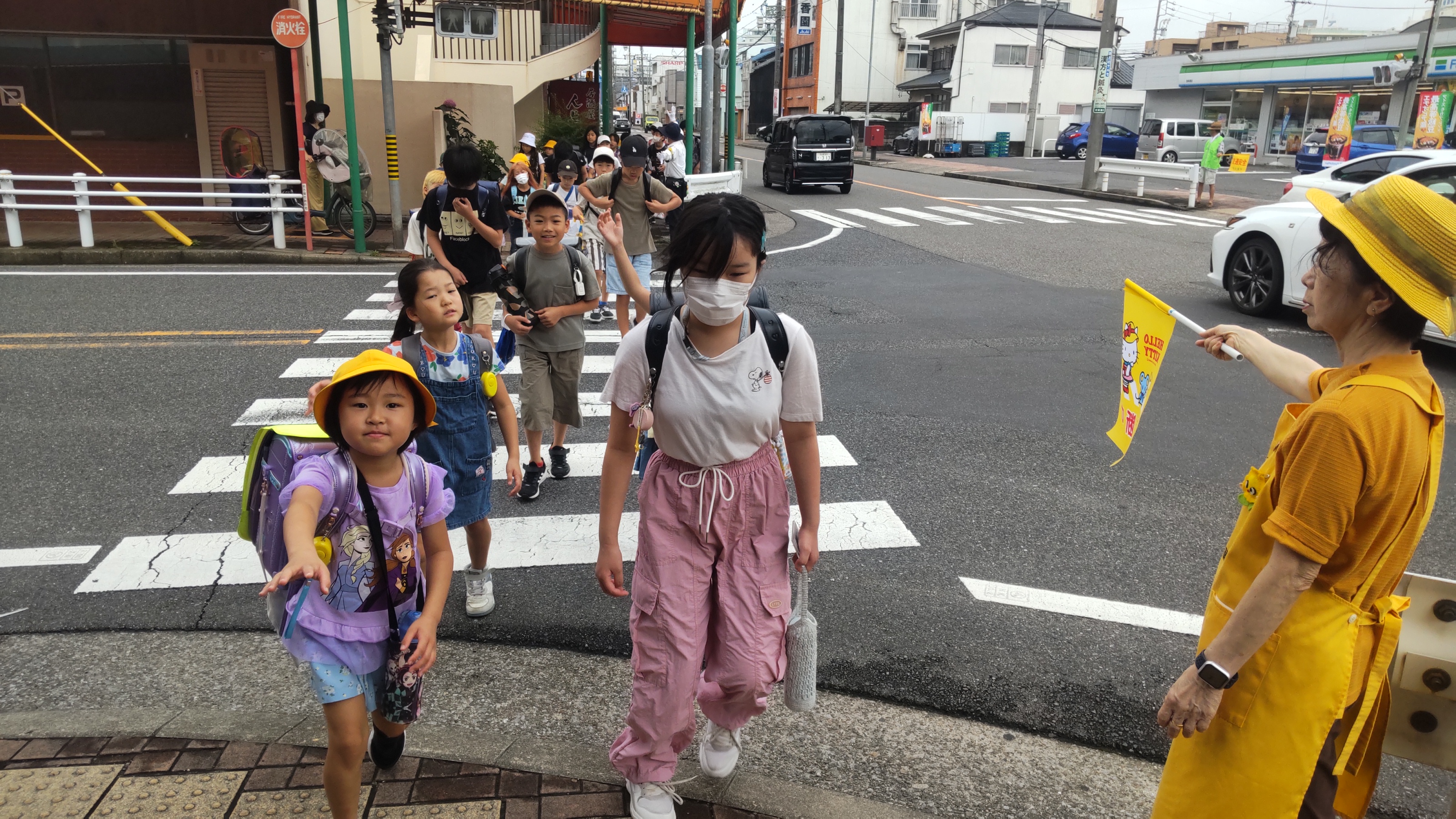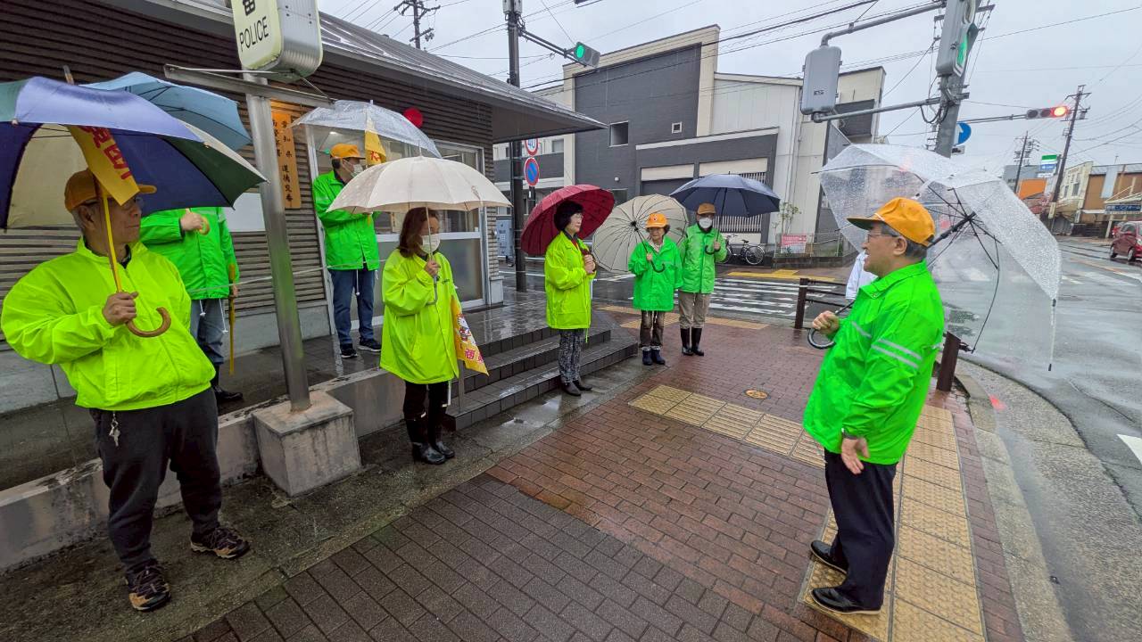 〇 令和6年7月16日(火) 朝 学区協議会役員、母親交通の皆様 による交通安全活動が行われました。参加された皆様、お疲れさまでした。