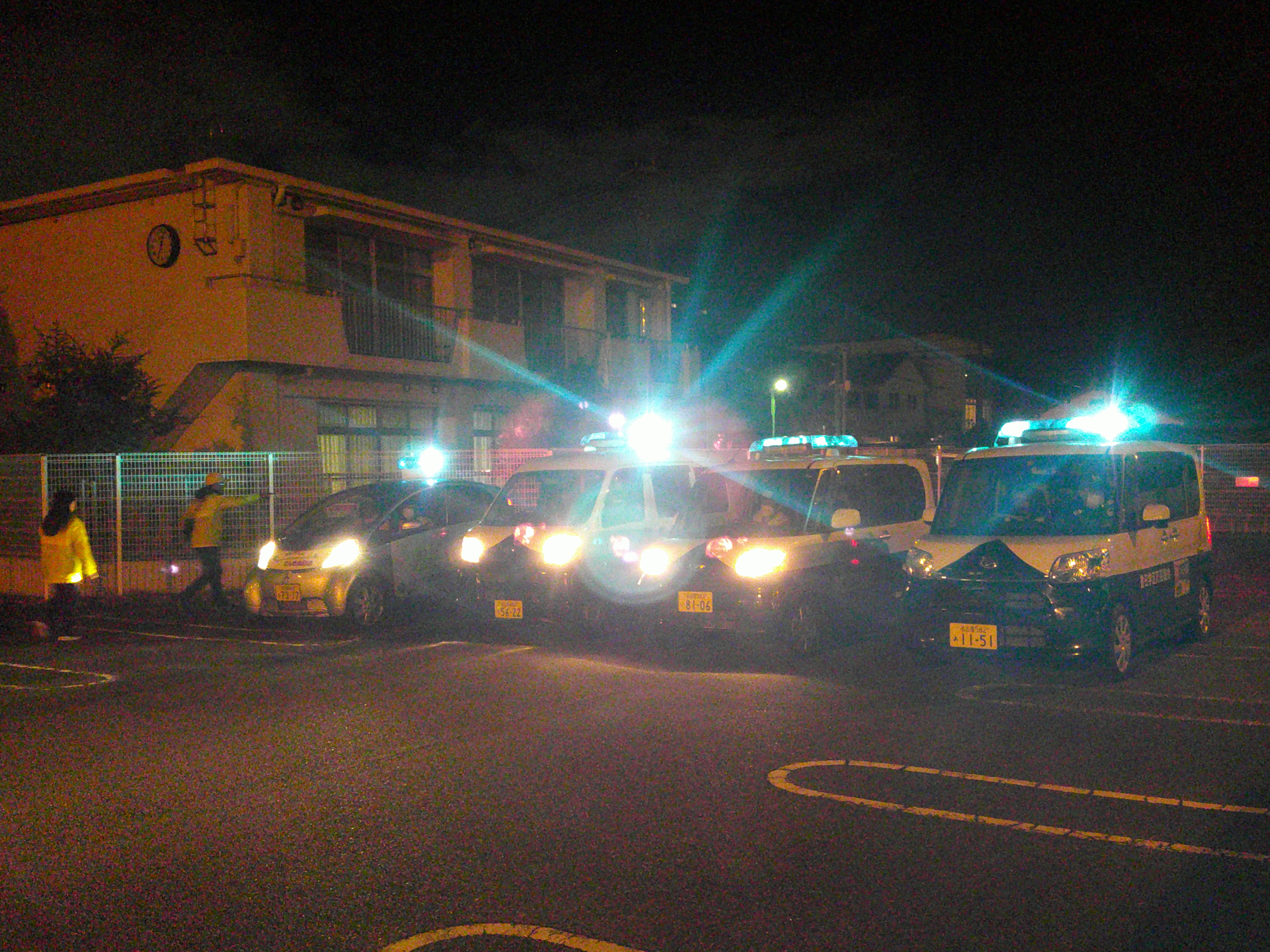 〇12月1日(金)夜、アピタ南店の駐車場において青パトの出発式が行われ、寒い中多くの関係者の皆様にご出席いただきました。