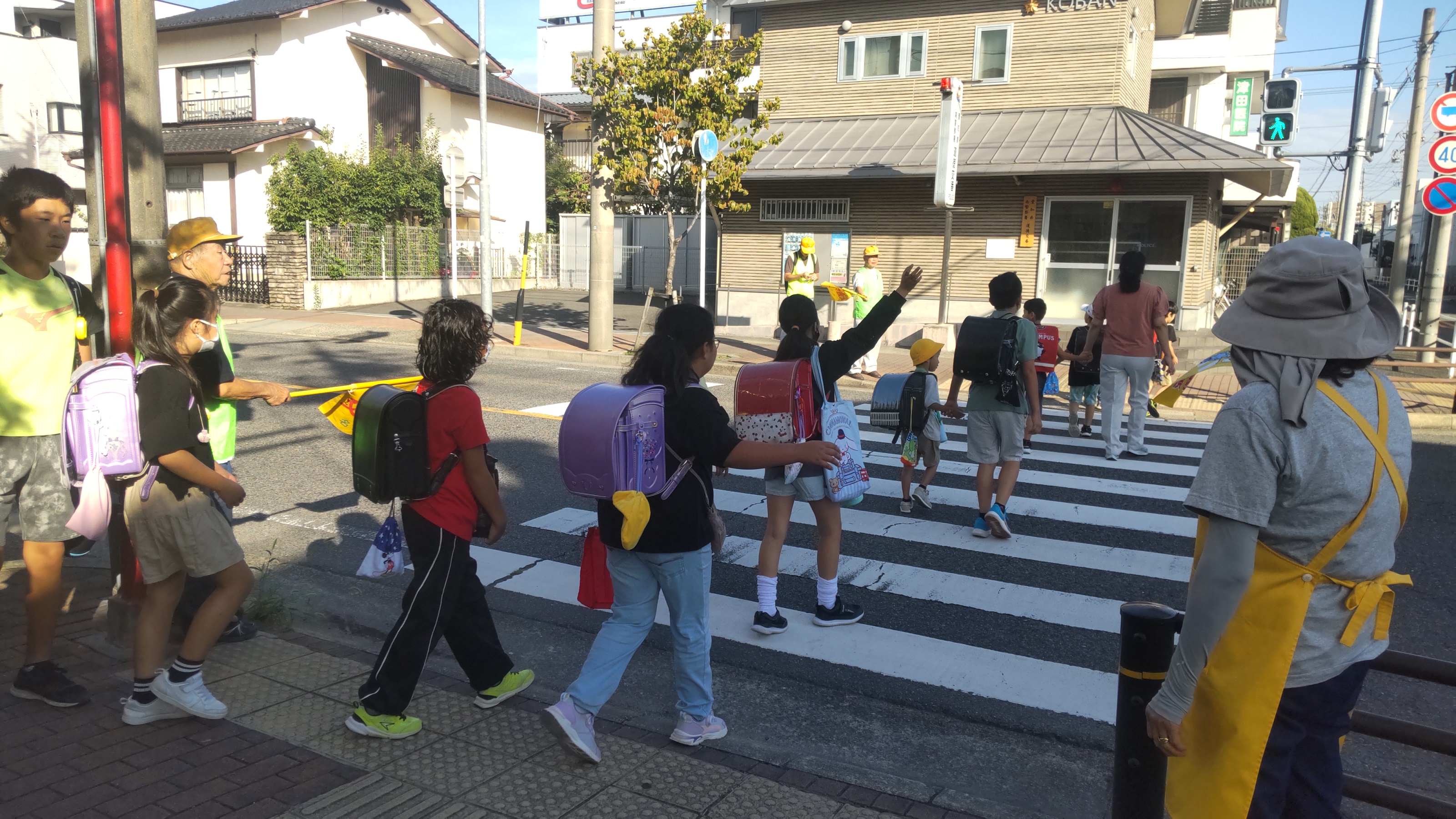 〇令和6年9月26日(木) 朝学区協議会役員、当番の町内会長及び母親交通の皆様による交通安全活動が行われました。皆様お疲れさまでした。