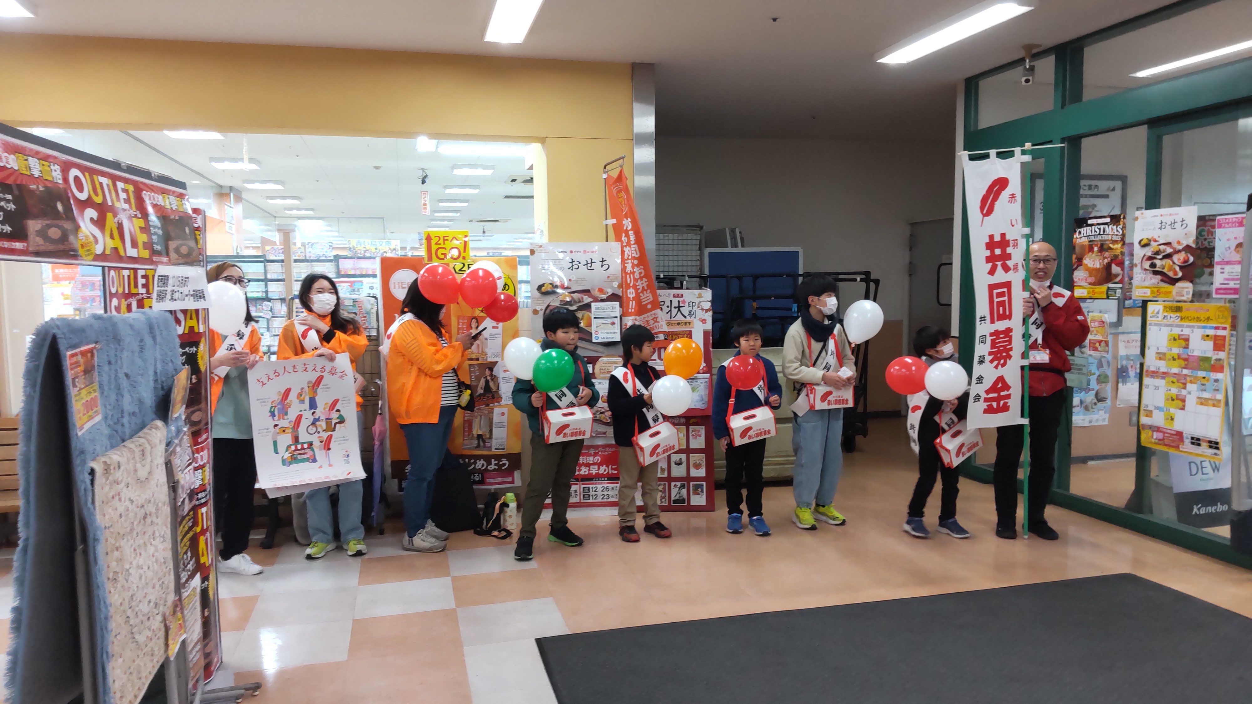 〇令和7年12月14日(日)子ども会の皆様による赤い羽根共同募金活動が行われました。会場となったアピタ名古屋南店には、ゆたか作業所の所長さん方も駆けつけていただき、子どもたちと一緒に募金を呼びかけてくださいました。子ども会役員や子どもたちをはじめ参加された皆様お疲れさまでした。
